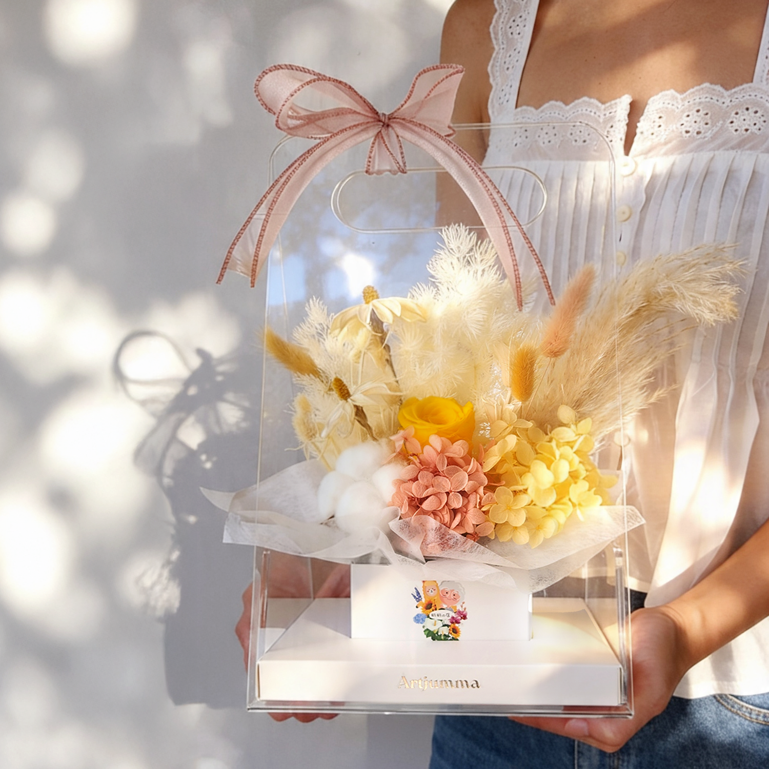 Our preserved floral arrangements are housed in a crystal-clear, solid acrylic case — elegant, durable, and made to last for years.